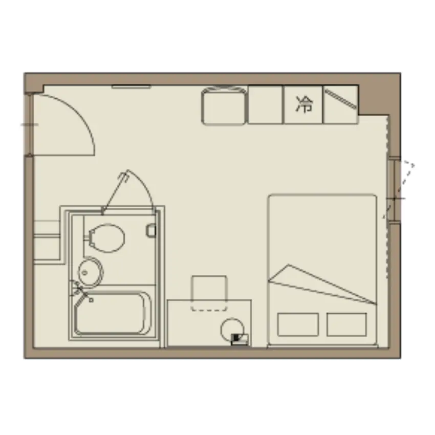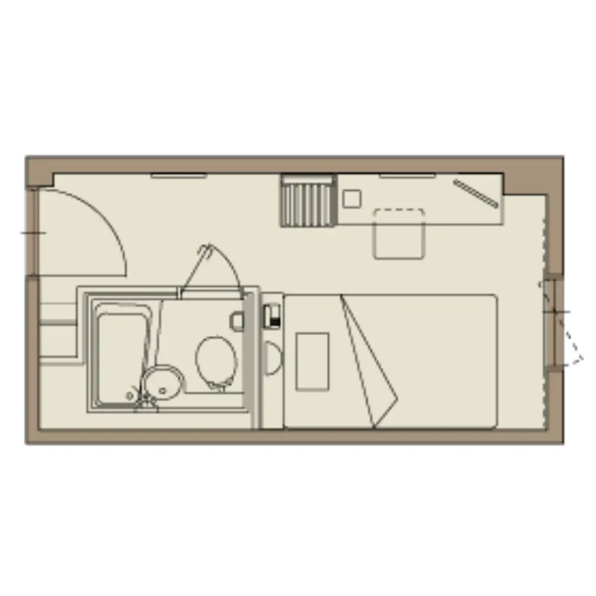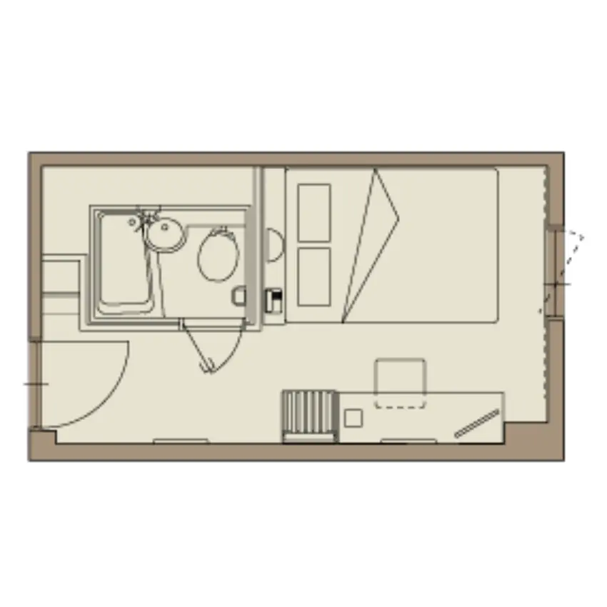 全室セミダブルベッドのシングルルームB。